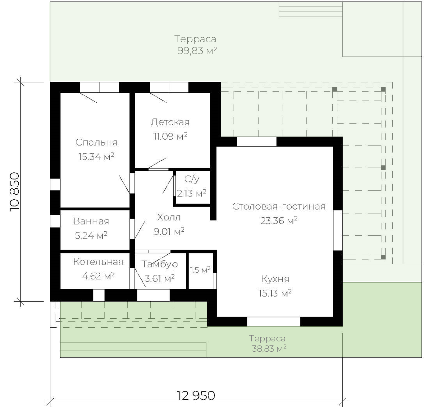 Дополнительный пакет: площадь дома 139 м2 (с учетом террас)